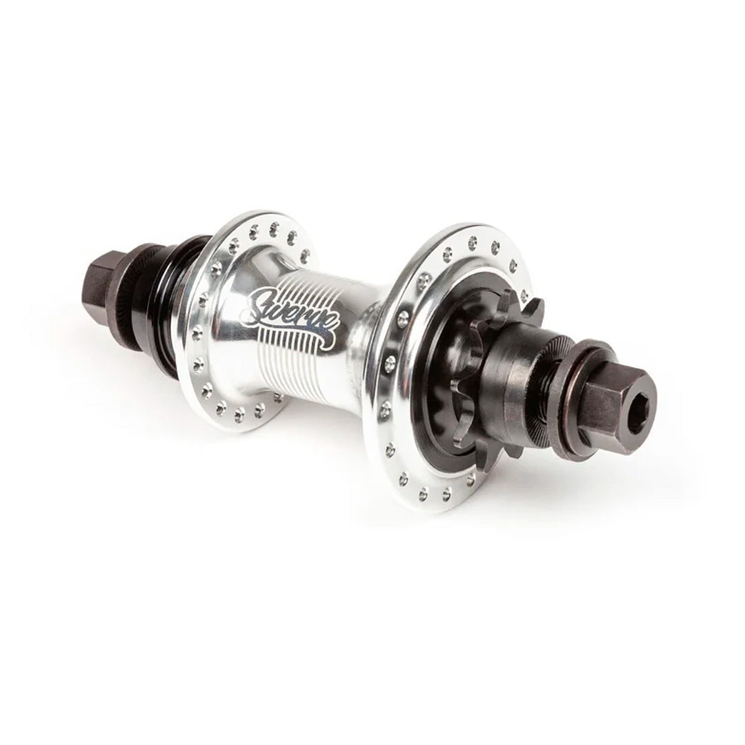 El buje Swerve utiliza muchas de las mismas piezas que el buje Back Street Pro, como pernos hembra de 14 mm a prueba de bombas, conos cromados, un enorme eje hembra y fuertes rodamientos 6903...