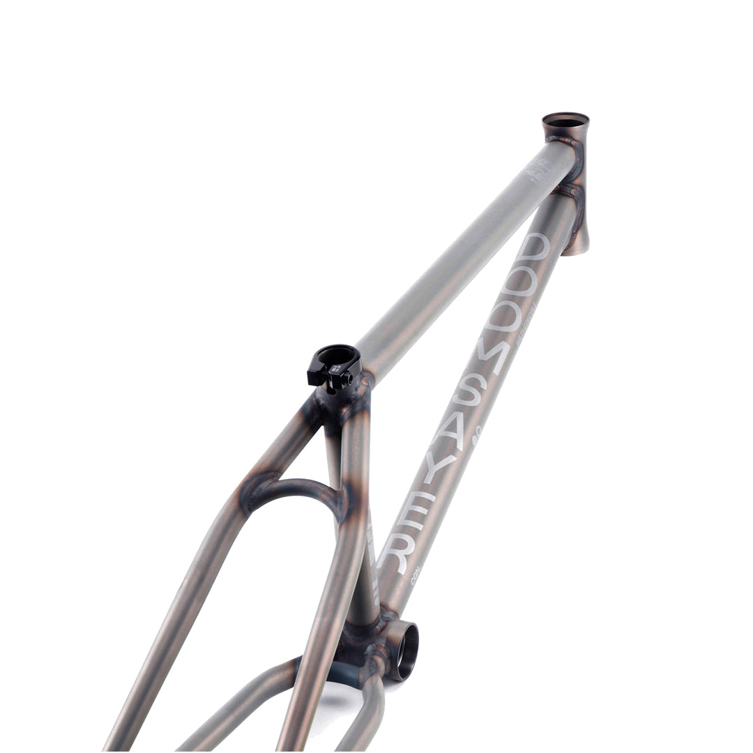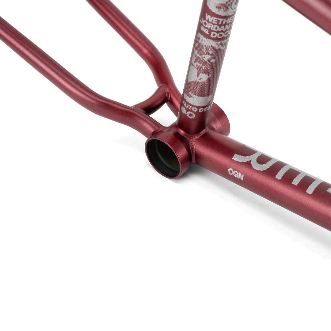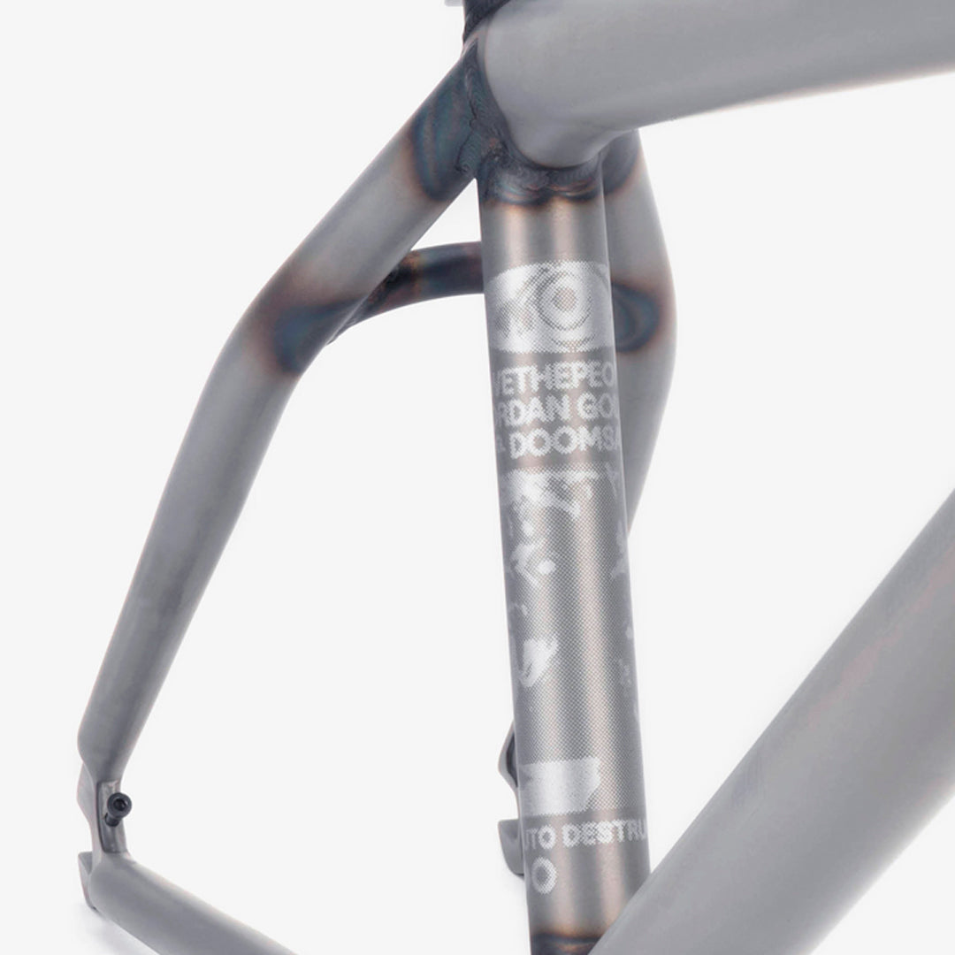 ¿Qué se puede decir realmente para resumir a Jordan Godwin? Uno de los ciclistas callejeros más progresistas del juego; decir que Jordan se ha ganado una montura distintiva sería quedarse corto del siglo. El cuadro Doomsayer fue una progresión natural del cuadro Battleship que Jordan había usado durante 3 años combinado con las necesidades específicas de Jordan que han evolucionado a lo largo de ese tiempo. Con una geometría súper progresiva, un juego de tubos reforzado y una unión del tubo del sillín hidroformada única, el Doomsayer es uno de los cuadros de calle más avanzados y robustos que jamás hayamos fabricado. Con una puntera invertida "sin enganches" para una resistencia mínima al moler. Incluye ilustraciones actualizadas para este año.