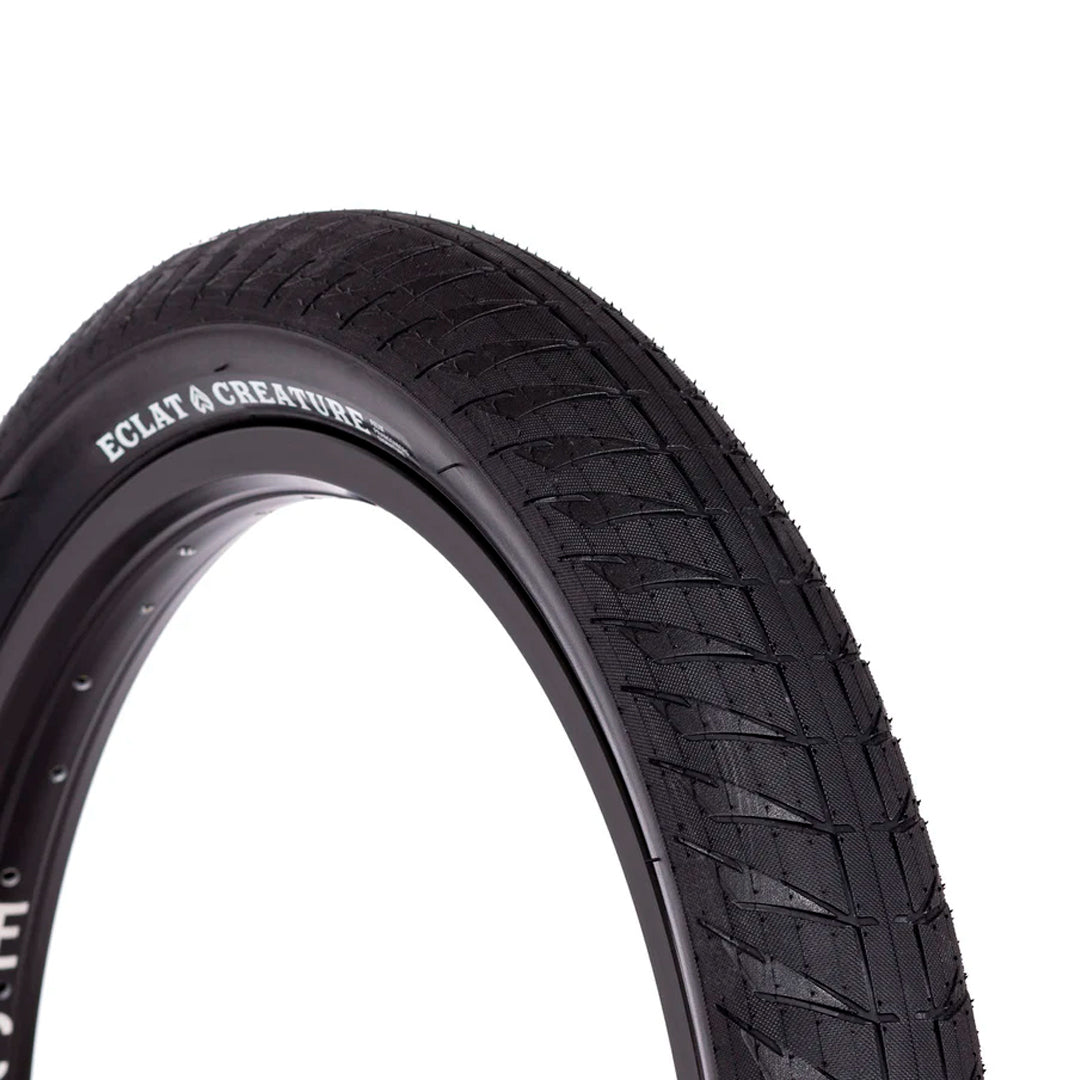 El neumático CREATURE es nada menos que una obra maestra técnica. Combinando la tecnología y los materiales avanzados de nuestro neumático MIRAGE y la banda de rodadura agresiva y el mayor tamaño de nuestro neumático MORROW, pudimos crear lo que es, en nuestra opinión, el neumático BMX todoterreno más avanzado hasta la fecha.