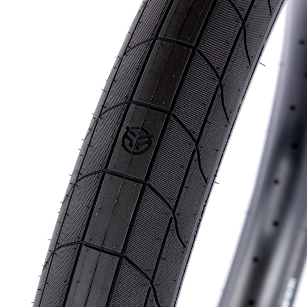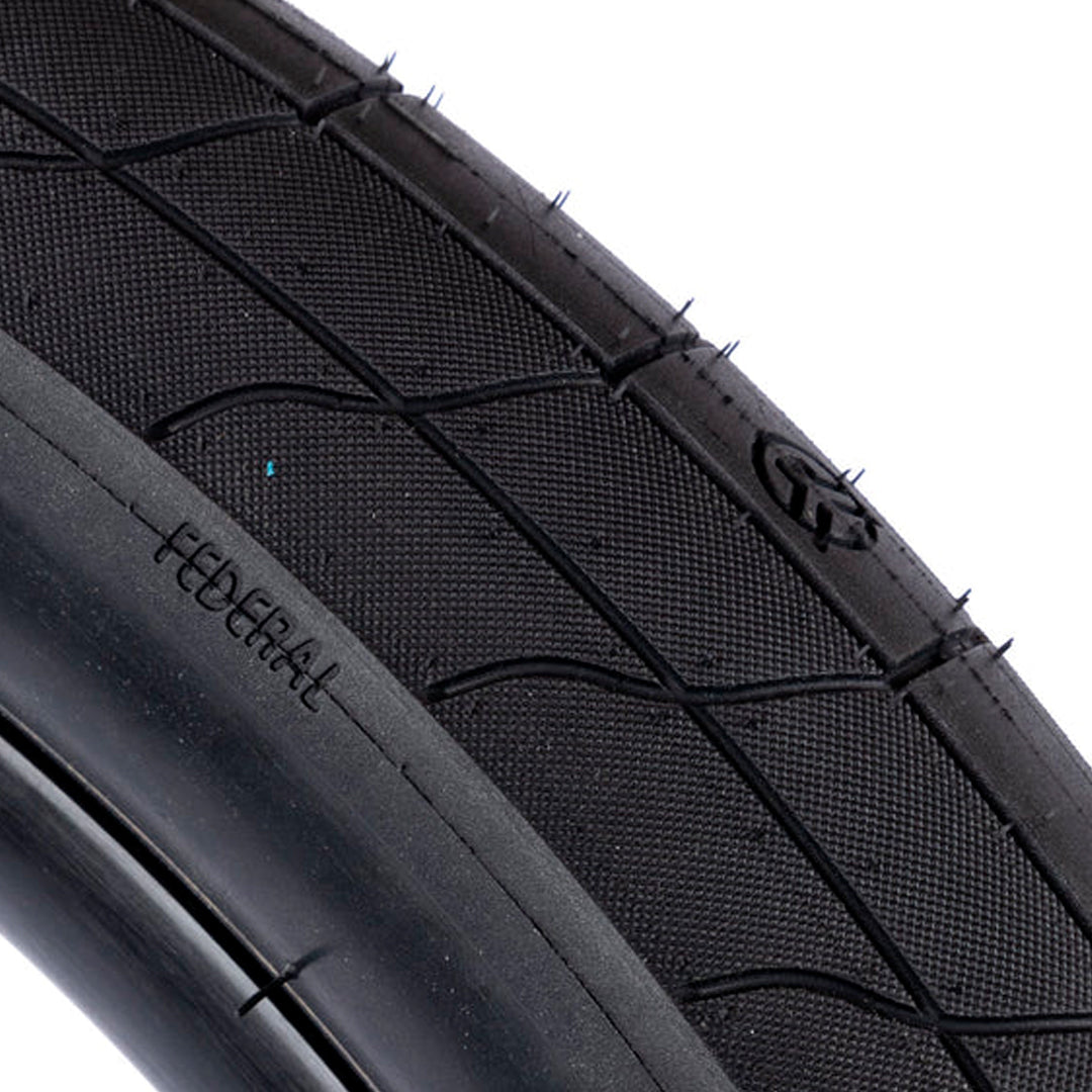 La nueva llanta Neptune está diseñado para una conducción intensa en la calle. Tiene paredes laterales súper duraderas para reducir los pinchazos junto con una pared lateral súper suave, por lo que es menos probable que se cuelgue durante los grinds, especialmente cuando se gira con dificultad. Tiene una transición suave y sin costuras. En comparación con nuestros neumáticos anteriores, creemos que esto es lo que algunos miembros del equipo consideran el tamaño óptimo de 2,35”. Para permitir que este neumático tenga un buen agarre pero también ruede rápido, tiene lados micro moleteados con una línea central resbaladiza y puede soportar hasta 110 PSI. La construcción de capas logra un fuerte equilibrio entre peso y durabilidad, mientras que las laminillas mínimas y los logotipos federales insertados alrededor de la circunferencia le dan al neumático un aspecto clásico.
